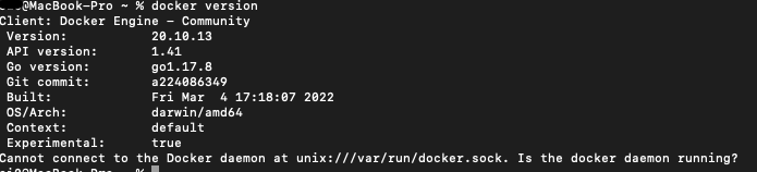 데몬까지 정상적으로 실행이 된상태에서 버전정보를 확인하면 다음과 같이 나오는 것을 알수 있습니다.