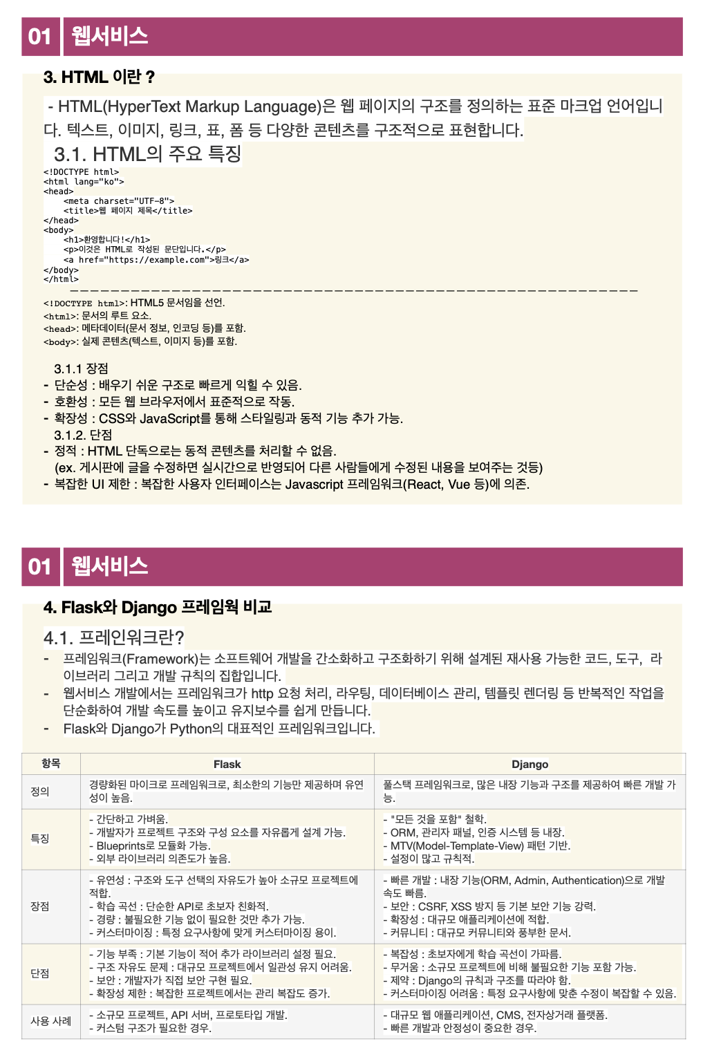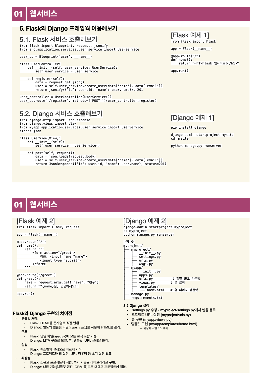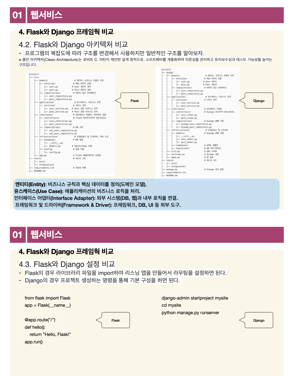 2. Flask와 Django 차이와 특징을 이해한다.