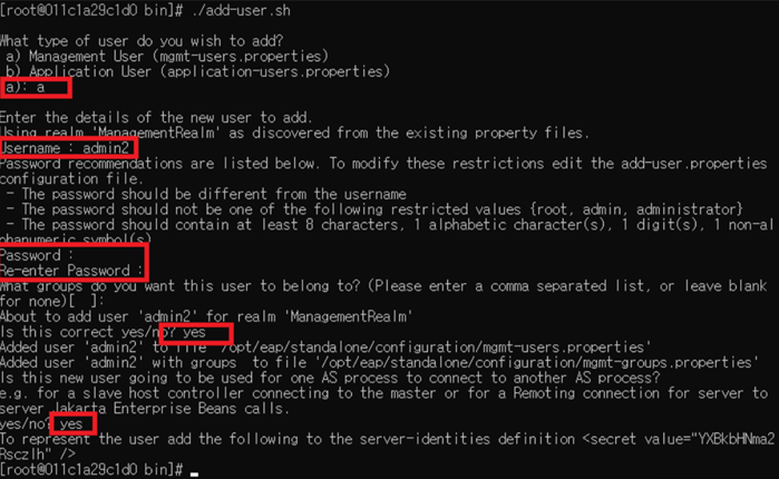 - /opt/eap/bin/add-user.sh 실행